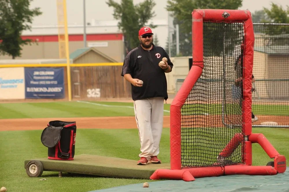 Okotoks Dawgs strike thrower Jeff Duda (Surrey, BC)