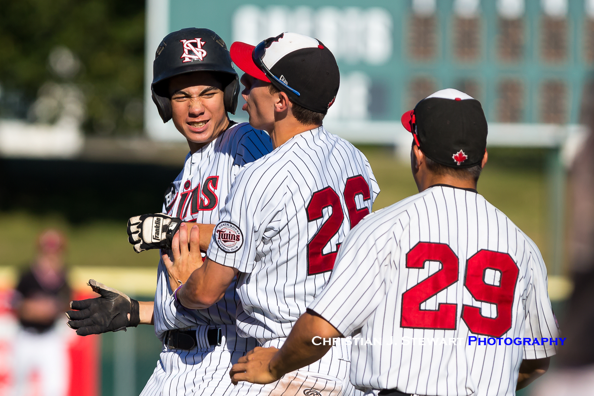 July 27, 2017, Victoria, BC (ISN) – The host Victoria Eagles took a 5-4 lead into the bottom of the seventh inning Thursday afternoon, only to watch as North Shore’s Lucas Yang stroked a bases loaded, two-RBI double to give the Twins a walk-off 6-5 victory in the opening game for both teams at the British Columbia Junior Premier Baseball League (BCJPBL) 2017 Provincial Championships at Lambrick Park in Victoria.