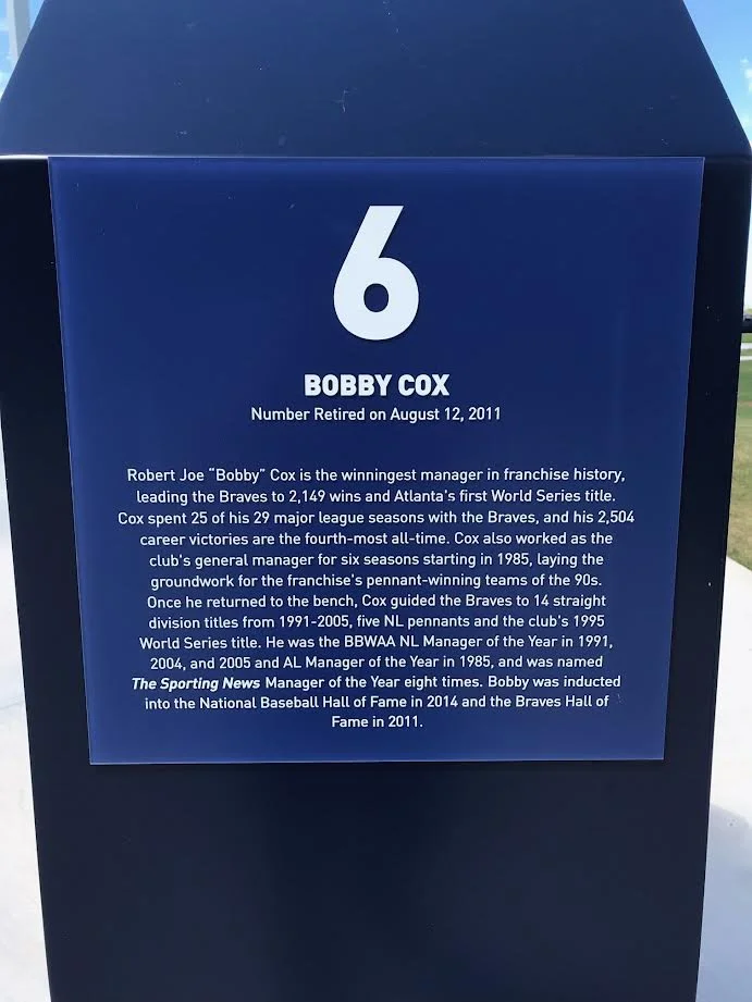 On display outside the Atlanta Braves spring training home in Florida — a tribute to Hall of Fame manager Bobby Cox. Photo: John Milton photos.