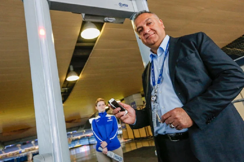 Mario Coutinho with one of 55 metal detectors installed in 2015. Photo: Toronto Sun.