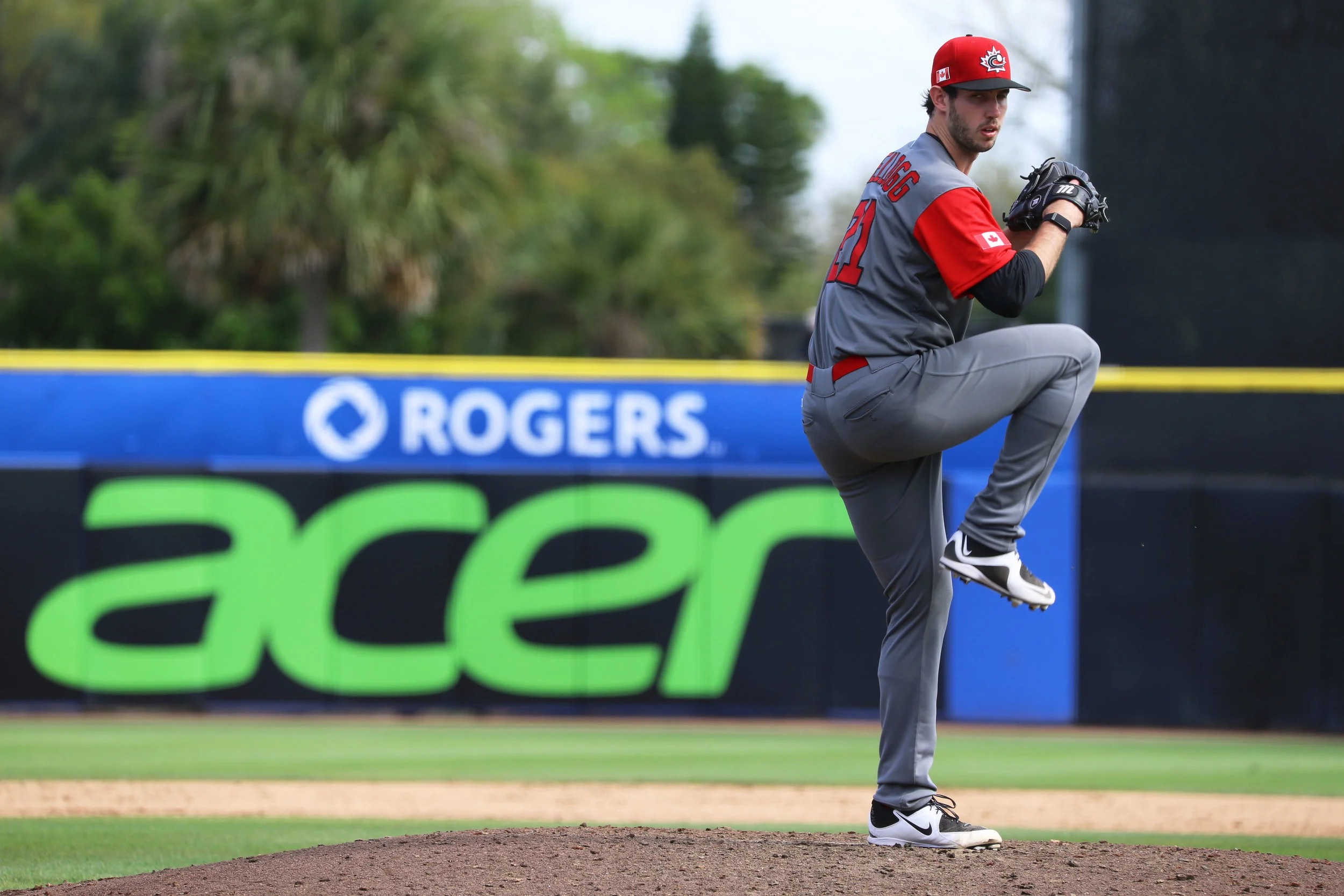 50 SHADES: Canada debuted new Majestic uniforms, which looked like they were either fresh from sliding practice on a soggy day or Arizona Diamondbacks hand-me-downs. They wore uniforms with red sleeves and grey tops and bottoms.