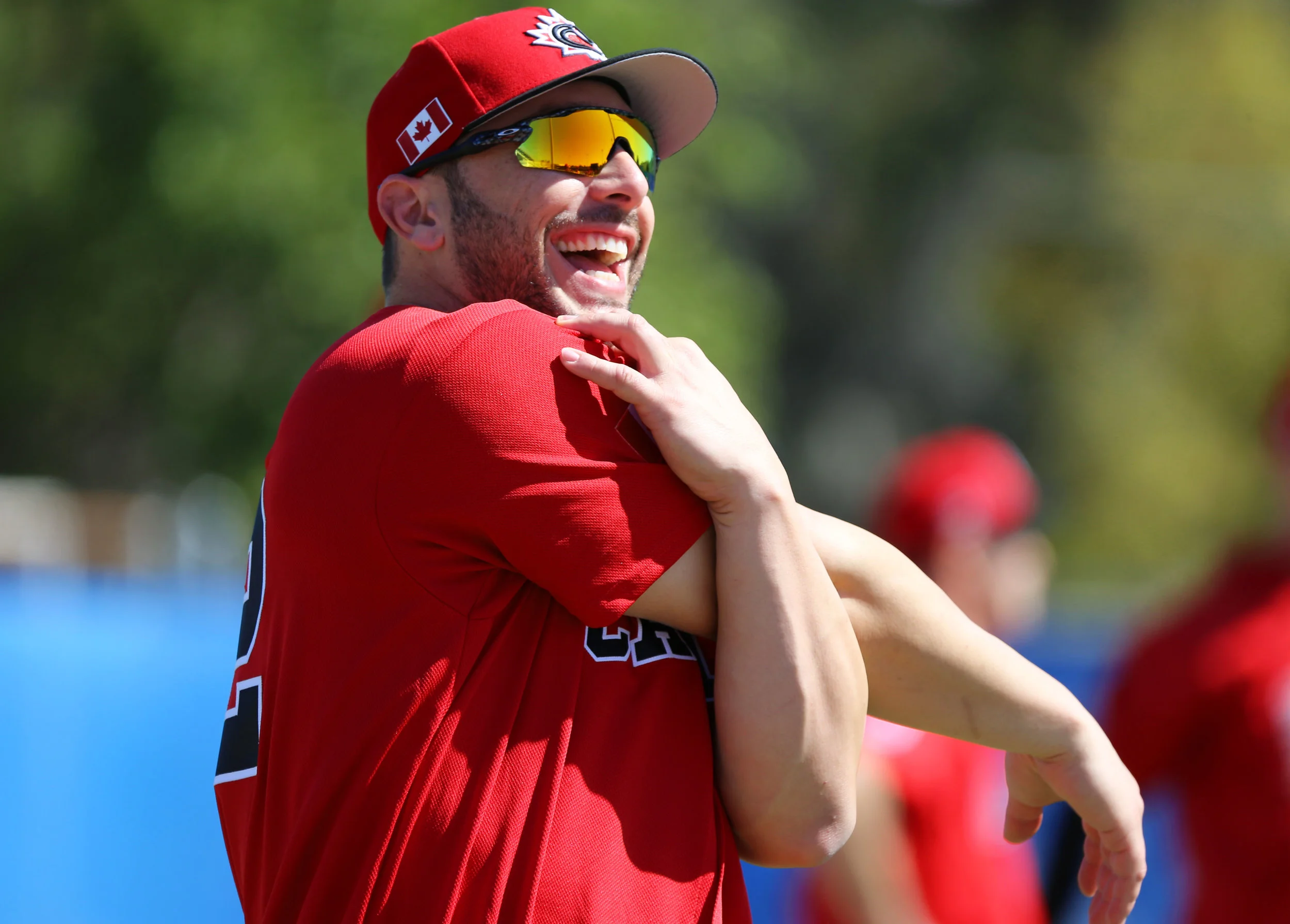 Later as Baseball Canada’s Adam Morissette steered the group away from the fence, the Fountain Valley, Calif. native explained his life-long goal of playing for Canada.