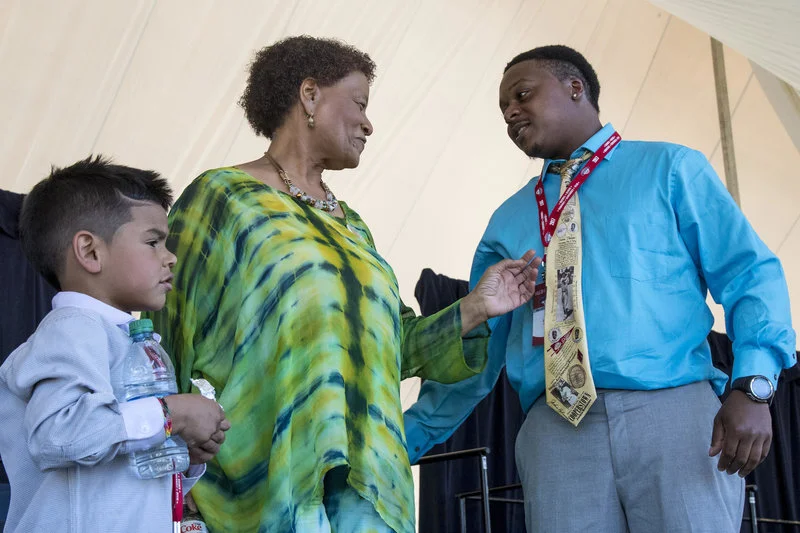 Cal Ripken points out how far Claire Smith hit her 'home run' of a speech.