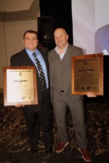 Paul Brown, left, and Mike Hook inducted into the Ontario Blue Jays Hall of Fame