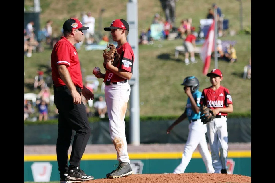 Starter Timothy Piasentin is removed after reaching the 85-pitch limit in Little League World Series at Williamsport.