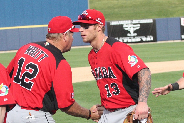 Leading off is centre fielder Dalton Pompey (Mississauga, Ont.) as he did last March in the WBC. Pompey was injured stealing a base. Pompey is the only true centre fielder that the country has and the only lead-off man too. This is his fifth time on the team and his third start.