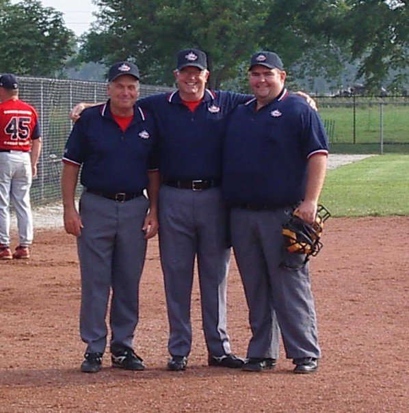 Hall of Fame umpire Don Gilbert (left) with Jim Cressman (middle) and Andy Callaghan.