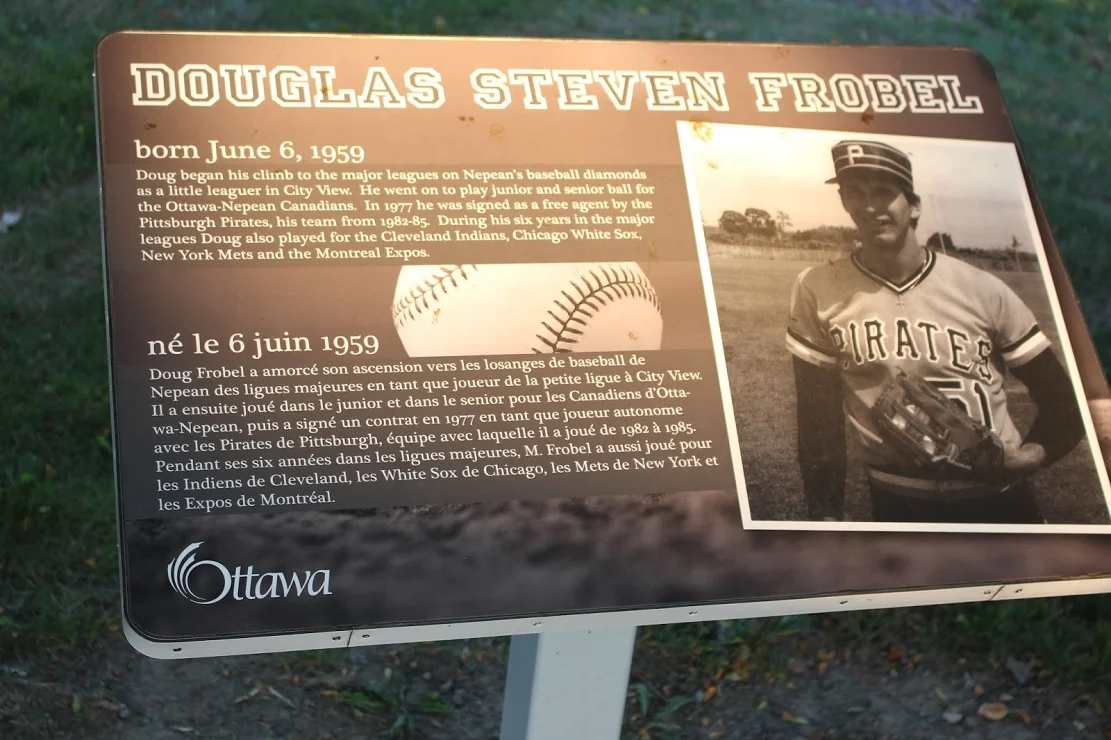 Some say that the greatest compliment one can ever give to a ballplayer is to name the park he played at after him. That did not happen for Frobel, however at the northwest corner of Harris Place and Rowley Avenue in Ottawa sits Doug Frobel Park and a plaque commemorating Douglas Steven Frobel.