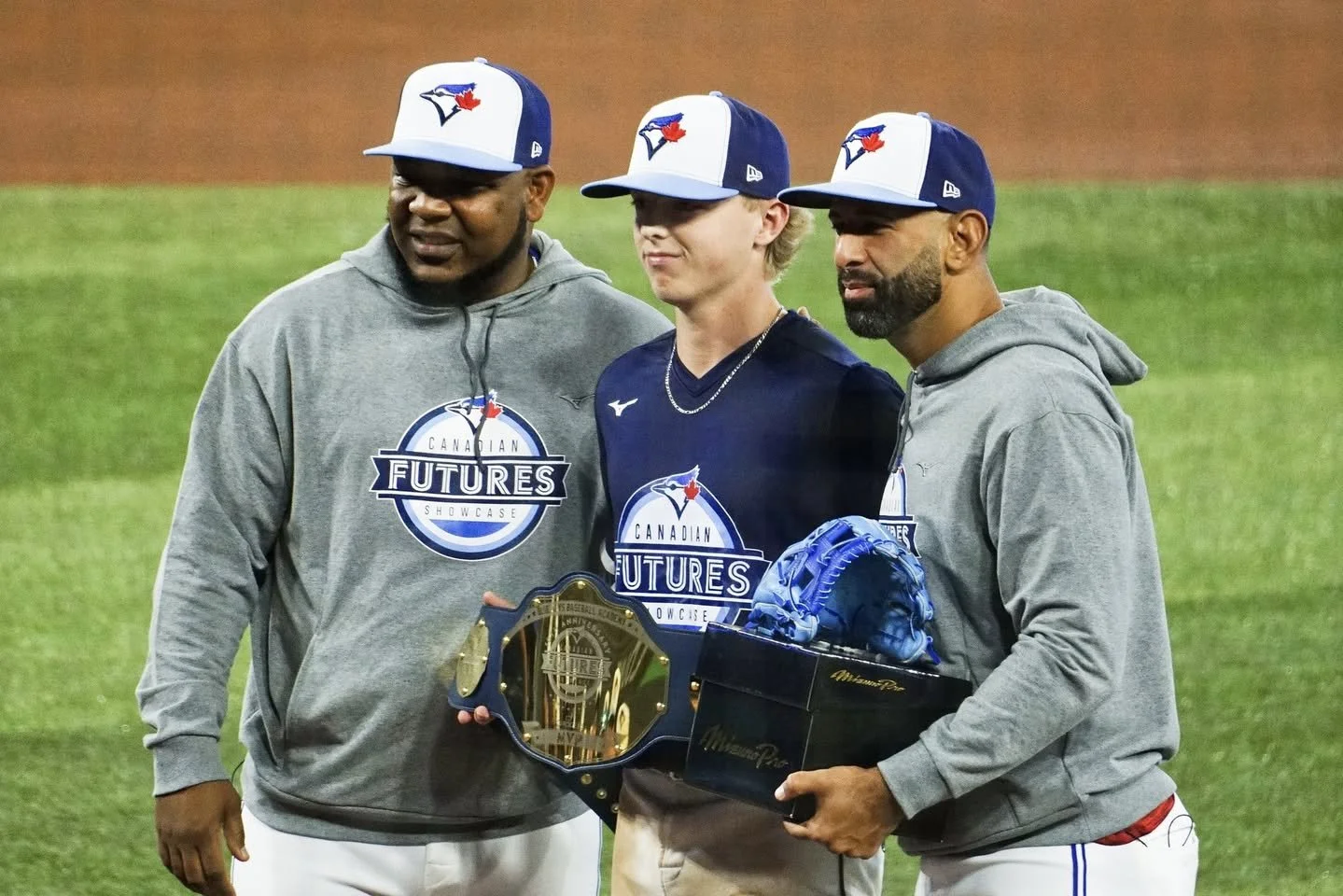 Great Lake Canadians Tyson Moran (Wingham, Ont.) shown here at the Futures Game with Edwin Encarnacion and Jose Bautista continued to hit at Royal Field.