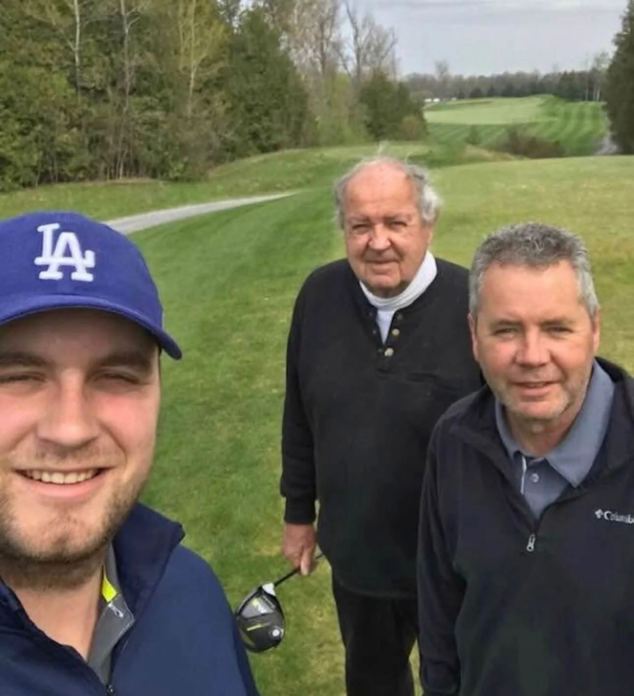 Brodie Harkness, left, grandpa Tim Harkness and Tim Harkness, Jr. on a golf outing.