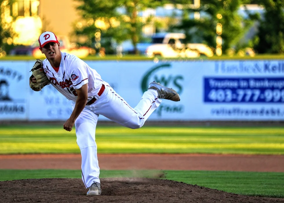 The Dawgs wasted zero time getting on the scoreboard, jumping out to a 3-0 lead in the bottom of the first. Hutzal picked up exactly where he left off prior to his ankle injury last year, blasting a ball off the left field wall for a stand-up double. A pitch away from being stranded, Kody Funderburk (Dallas-Baptist) worked a two-out walk before new-face Jayse McLean made himself known to the Okotoks fan base in his debut. In his first at-bat, The North Dakota State University product barrelled a ball to left-centre for the Dawgs’ second stand-up double of the inning, driving in a pair of runs.