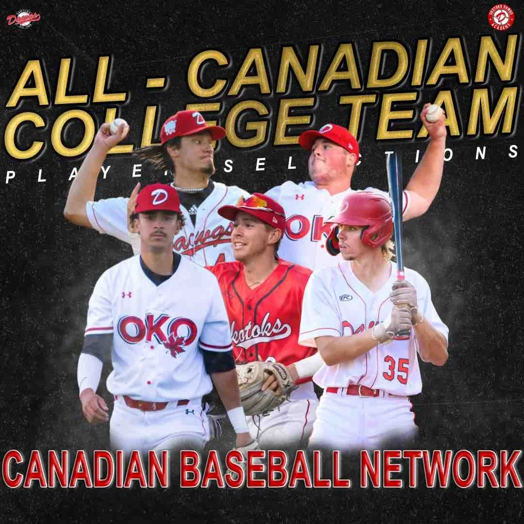 Five Okotoks Dawgs players have been selected to the Canadian Baseball Network’s 2023 All-Canadian College teams.