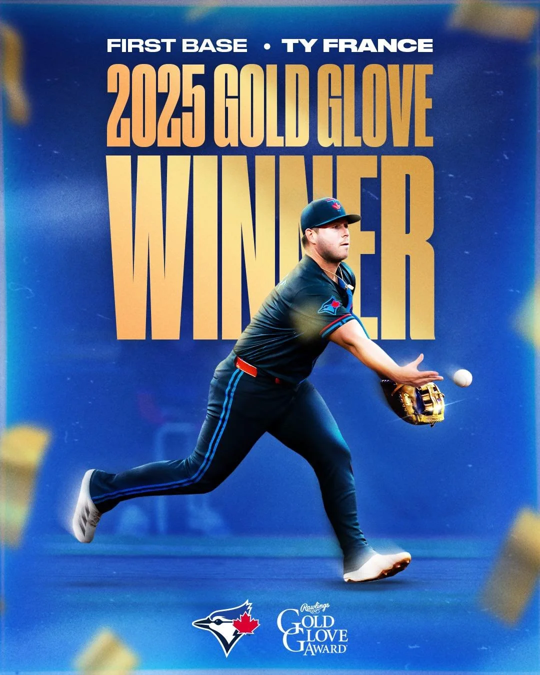Toronto Blue Jays first baseman Ty France was the only Toronto Blue Jays player to receive a 2025 Gold Glove Award. Photo: Toronto Blue Jays