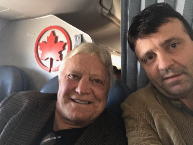 After take-off, a flight attendant asked Caliendo to come up front so to talk to Hull, who asked “Hey, have you got George Morneau’s phone number?” Caliendo didn’t have the phone number of Justin Morneau’s father. George Morneau and Hull have met and George has always said he wants to be buried in his Blackhawks No. 9 sweater.