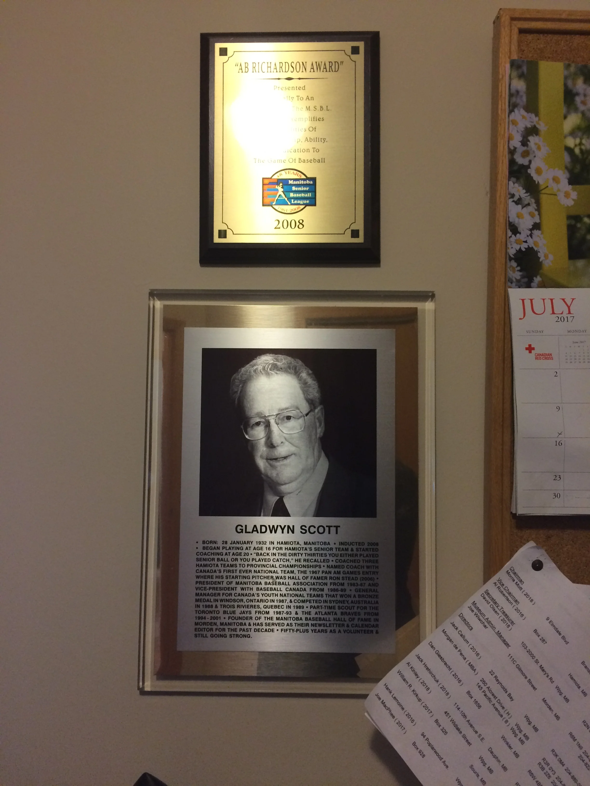 Throughout the years Scott remained involved with baseball in his home province of Manitoba, and he just resigned last year as head of the chairman of the Manitoba senior baseball council.