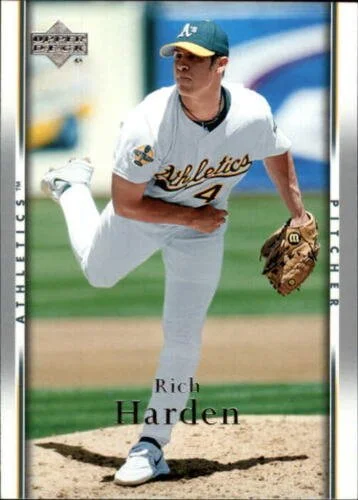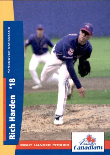Harden began his professional career close to home with the Class-A Short-Season Vancouver Canadians, posting a 3.39 ERA in 18 games in 2001. But he’d enjoy a breakout campaign the ensuing year when he went a combined 12-6 with a 2.94 ERA, while striking out 187 batters in 153 innings in 28 starts between High-A and Double-A. His efforts earned him the A’s Minor League Player of the Year award and helped him land the starting nod for the World Team in the Futures Game the following year.