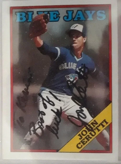 I’m in the sports writing business now, so I wouldn’t dream of asking a player for an autograph. That’s a major no-no. But back then, I was merely a fan, working in the financial industry, so I had Cerutti sign this 1988 Topps card for me.