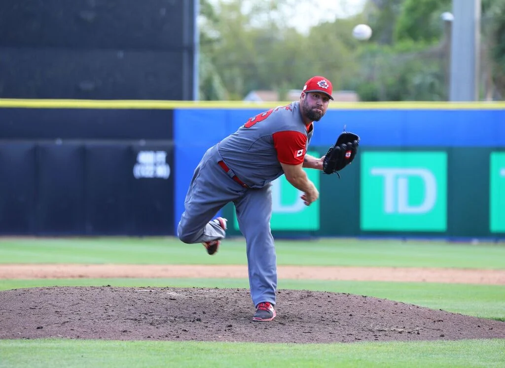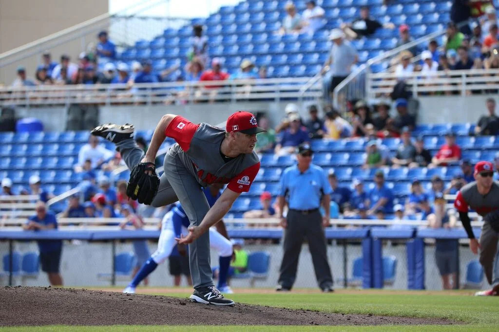 RHP Eric Gagne (Mascouche, Que.) returned after pitching in indy ball to wear the CANADA uniform in the WBC. Postt-tourney he threw a bullpen to audition for scouts. Photos: By Amanda Fewer.
