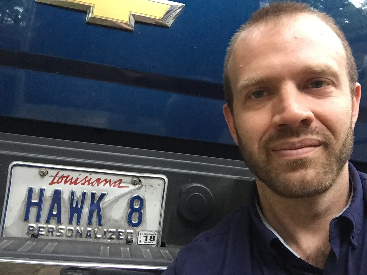 His Louisiana licence plate for his truck says Hawk 8.