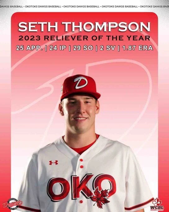 Thompson was a shutdown arm for the Dawgs all summer. In 25 appearances, the Calgary native posted a 1.87 ERA while fanning 29 batters in 24 innings. He also registered two saves. The 2023 season represented the local right-hander’s third with the Dawgs.