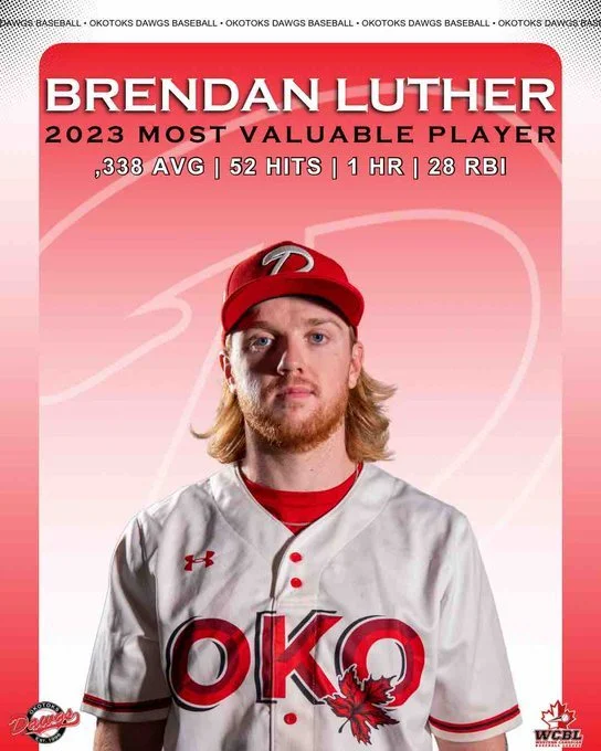 Luther was a sparkplug at the top of the Dawgs’ lineup in 2023 and played gold glove defence up the middle. In 38 games, he batted .338 with a homer and 28 RBIs. He also had 52 hits and 28 runs. The 2023 campaign was his second with the Dawgs.