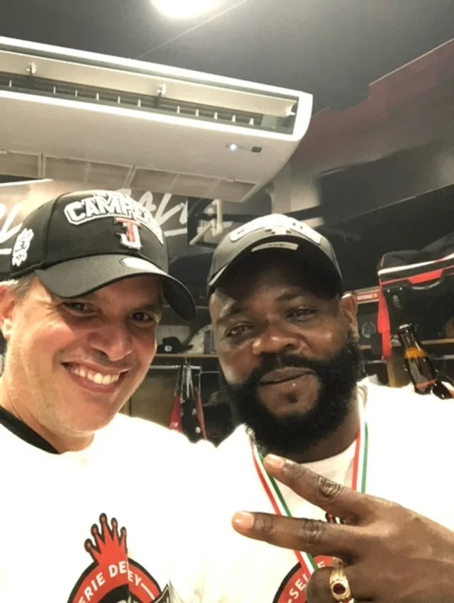 Toronto resident Arturo Marcano sport director. of the Toros de Tijuana, with closer Francisco Rodney who rallied from a 3-0 deficit to win the Mexican League.