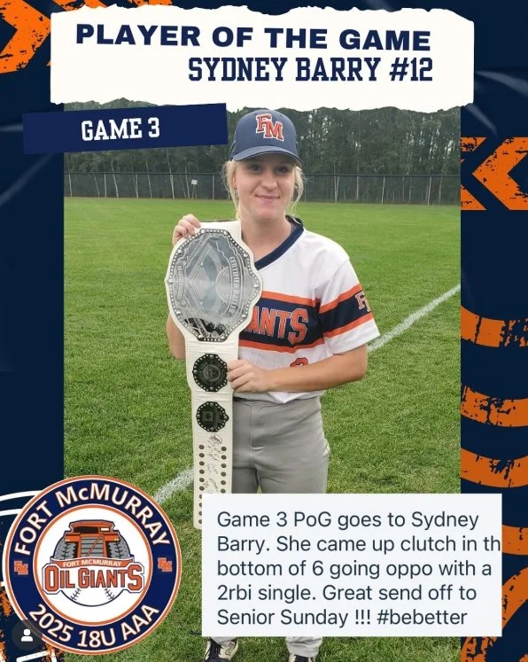 A highlight of the past year was also playing for her hometown Fort McMurray Oil Giants as they hosted the Baseball Canada 18U Nationals.