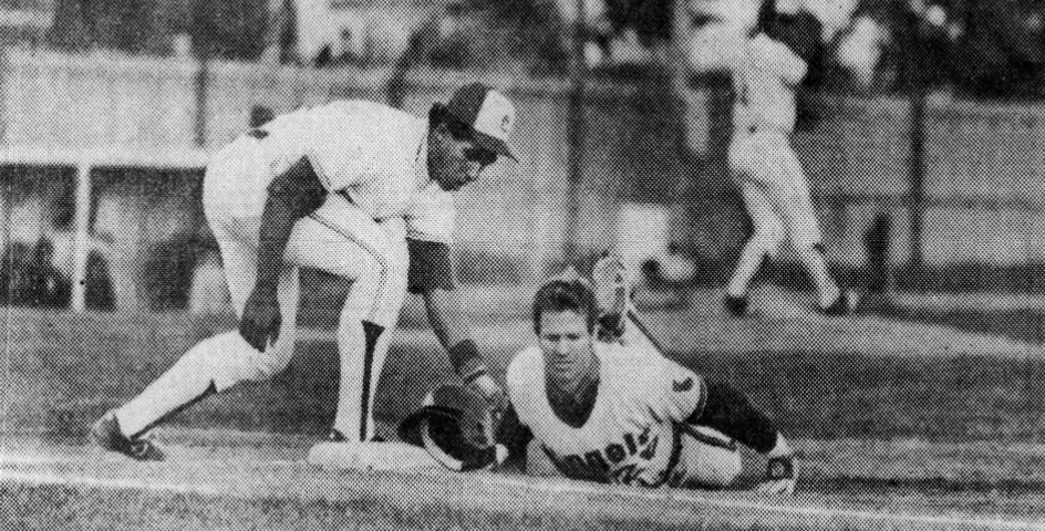 Future MLB slugger Andres Galarraga mans first base for the Calgary Expos. Photo: Calgary Herald