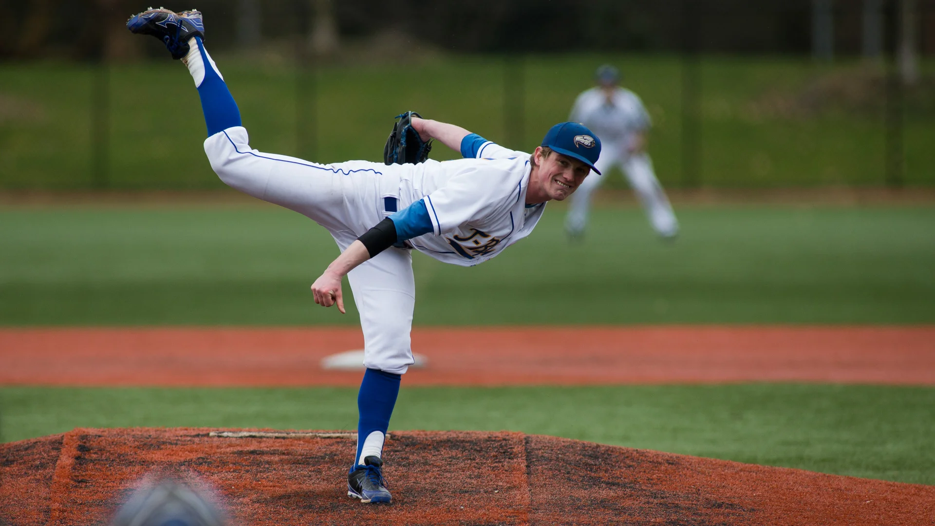RHP Connor Noble earned NAIA-West pitch of the year honours. Photos: Bob Frid, UBC.