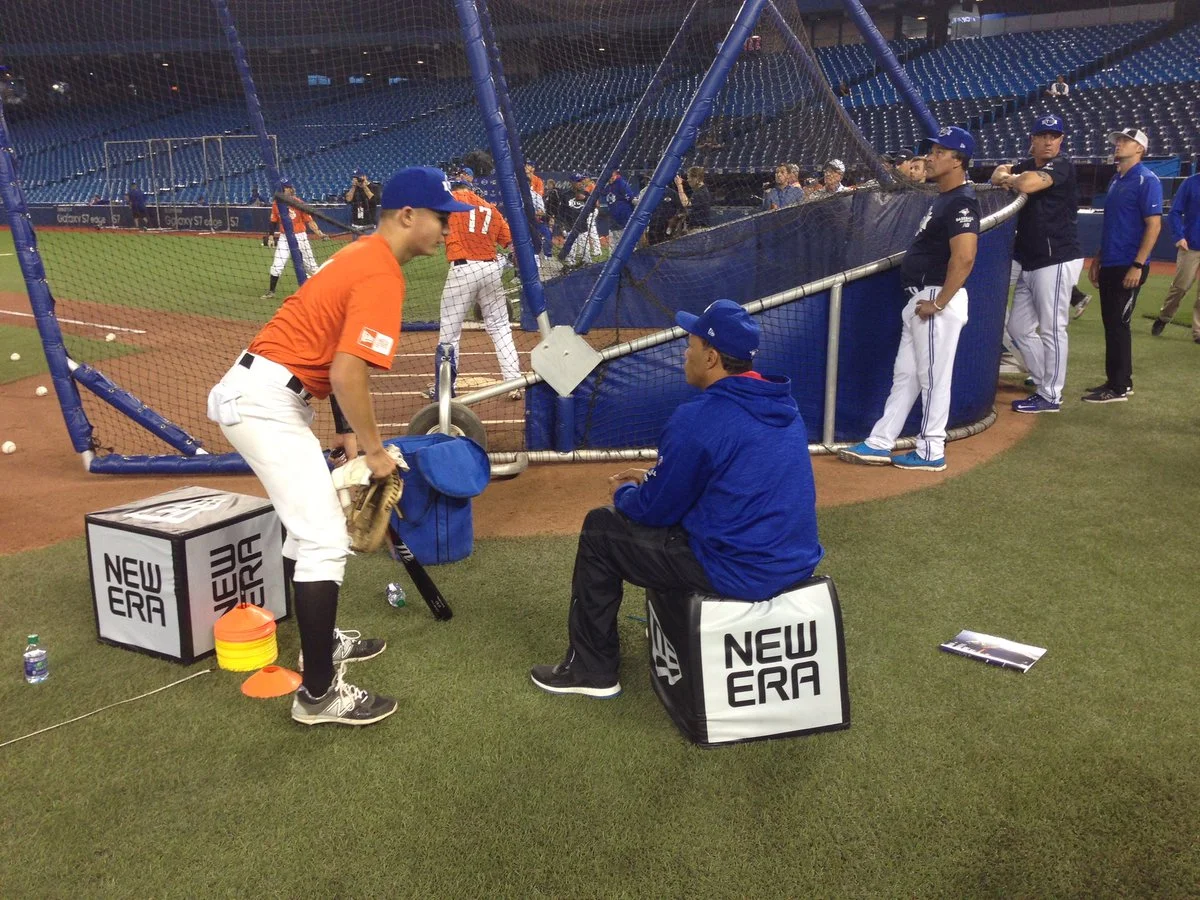 Thomas Neal (Vancouver, BC) talks with Hall of Famer Robbie Alomar at Tournament 12.