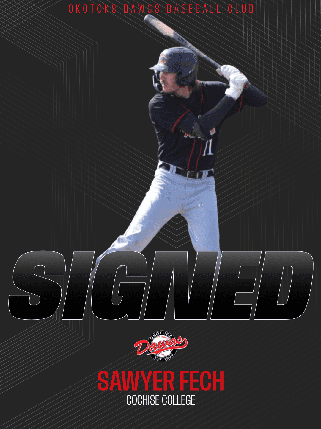 The Okotoks Dawgs continue to build momentum heading into the 2026 season with the signing of three new players: infielder Sawyer Fech from Cochise College, left-handed pitcher Ty Manuel from Odessa College and right-handed pitcher Emmett Stacher from Linn-Benton Community College.