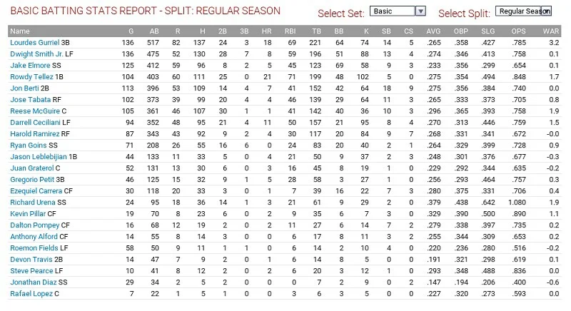 The GCL Blue Jays were 25-35 and finished fifth in their division. Yorman Rodriguez easily led in WAR with 1.5 thanks to hitting four home runs (in a five-way tie for the club lead) and a .328/.396/.446 slash line. Newly drafted Cody Rutscher hit .333/.429/.444 for a higher OPS in fewer at bats.