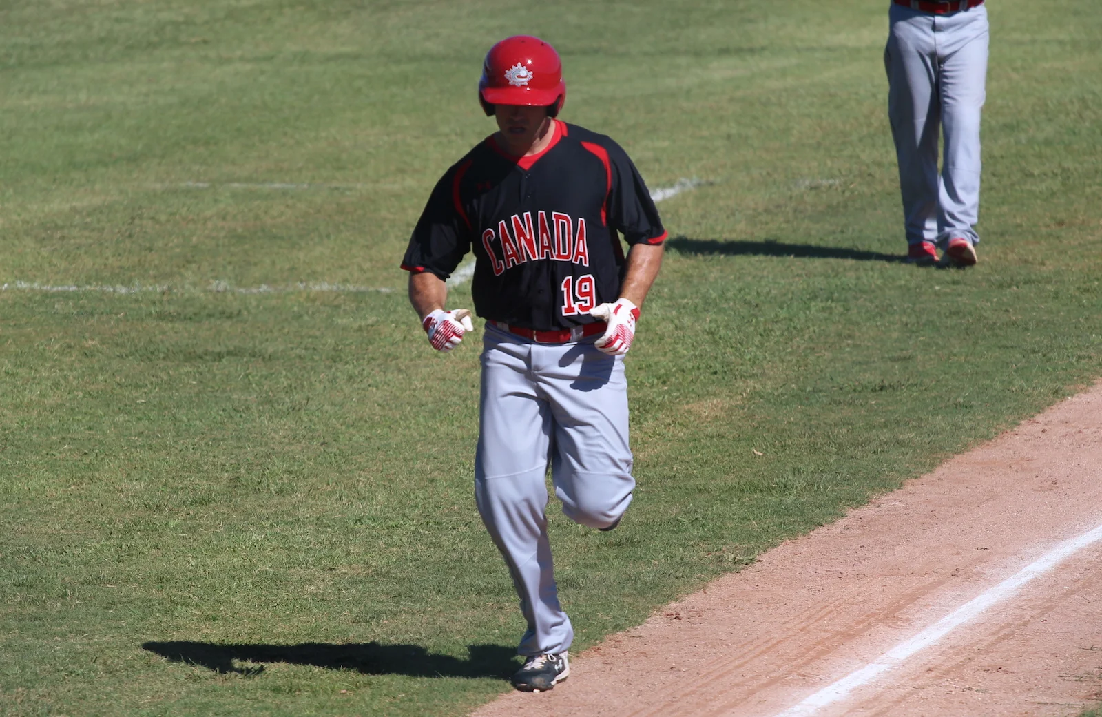 Eric Wood (Oshawa, Ont.) homered in the first inning for Canada on Saturday. Photo Credit: Baseball Canada