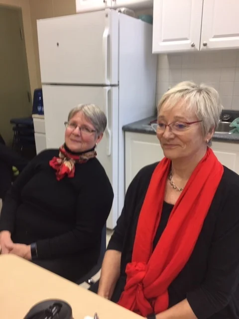 Cathie Hughes (left) and Judith Mills (right) participate in a discussion about girls’ and women’s baseball in Canada.
