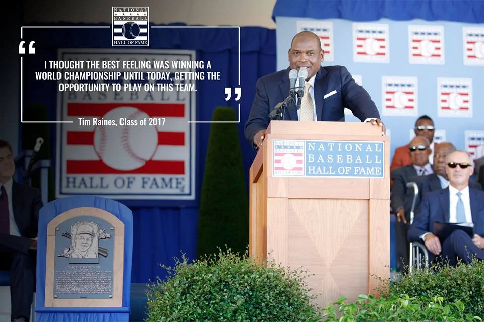 Raines shook off sniffling from a cold and shook off a lot of emotion as he thanked so many people who made an impact on his life. There were mentions of former Expos teammates Andre Dawson, Gary Carter, Tim Wallach, Warren Cromartie and Ellis Valentine and agents Tom Reich, Adam Katz and Randy Grossman.