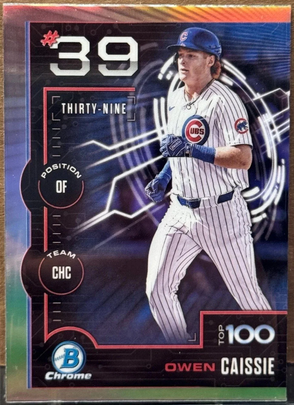Fieldhouse Pirates alum and Chicago Cubs outfield prospect Owen Caissie (Burlington, Ont.) is featured on this insert card as part of the 2025 Bowman release.