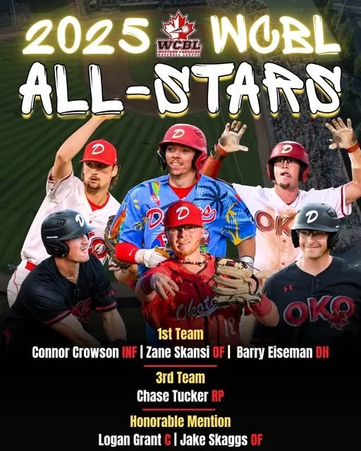 The Okotoks Dawgs were a frontrunner once again in the 2025 Western Canadian Baseball League (WCBL) season, and the league recognized that dominance by naming six Dawgs players to its All-Star teams, including three on the prestigious First Team.