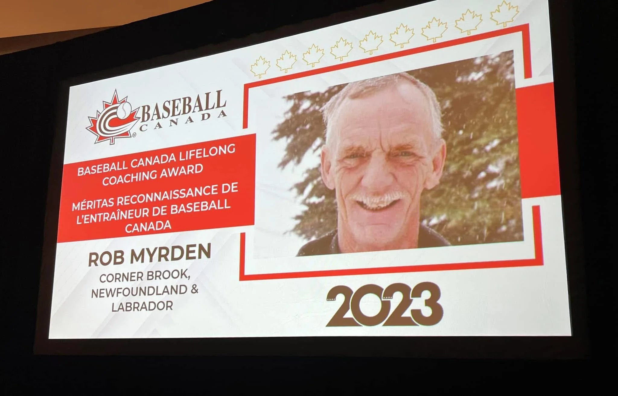 Baseball Newfoundland and Labrador described Myrden as an integral and longtime member of Corner Brook Baseball, noting his contributions to the growth and operations of the organization over the past 50 years. Coaching for more than 45 of those years and spanning every level possible, he holds the distinction of coaching more teams than anyone in the history of his local association, and possibly the history of Baseball Newfoundland and Labrador.