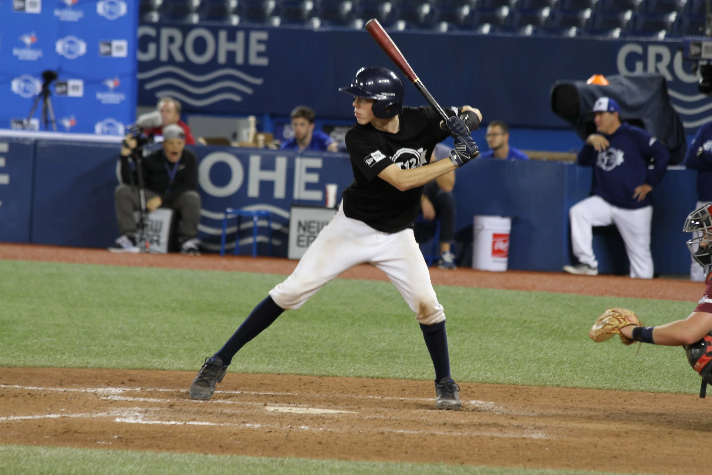 Great Lake Canadians INF/OF Ben Roberts (Burlington, Ont.) made a pinch-hit appearance for Team Black. Photo: J.P. Antonacci