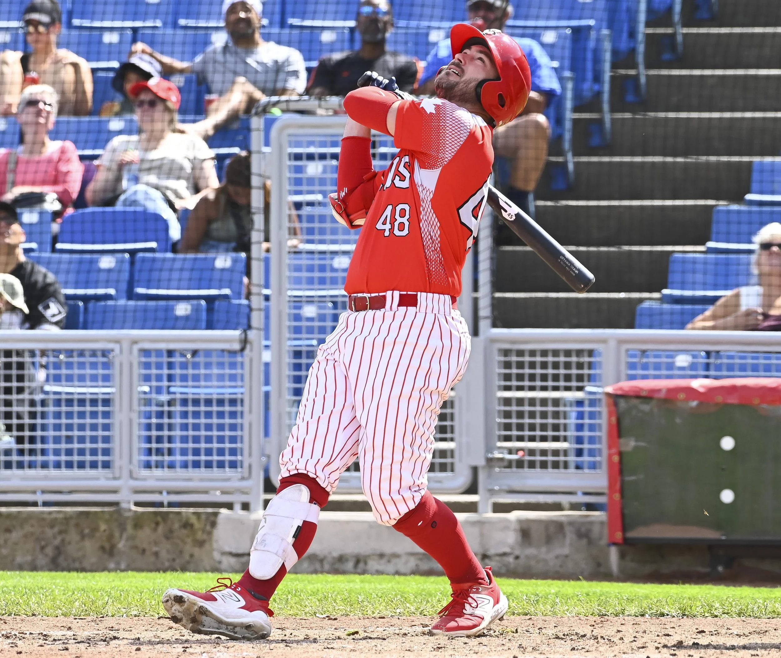 Ottawa Titans outfielder Joey Terdoslavich went 3-for-3 in his team’s 4-3 loss to the Quebec Capitales on Sunday. Photo: Ottawa Titans