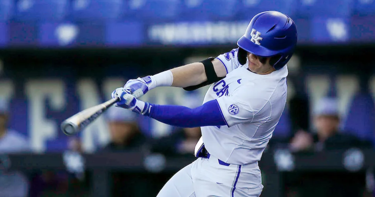 ABC alum Emilien Pitre (Repentigny, Que.) smacked a pair of doubles and drove in four runs as Kentucky defeated Arkansas 11-3 at Kentucky Proud Park on Saturday. Photo: University of Kentucky Athletics