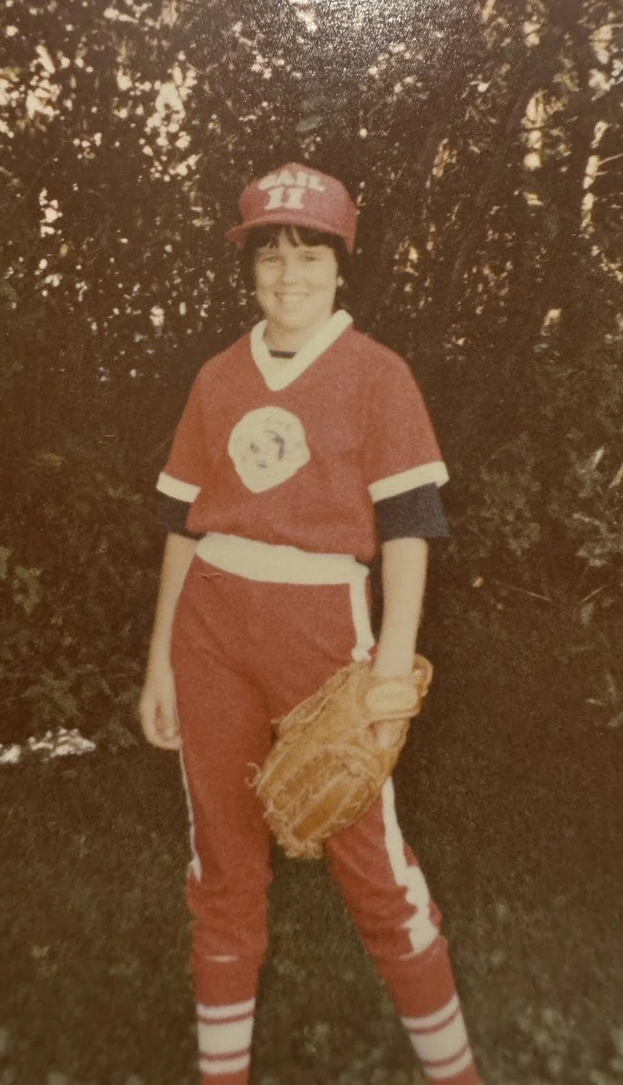 Gail Johnson started playing baseball at a young age. Here she is in her backyard when she was 12. Photo supplied.