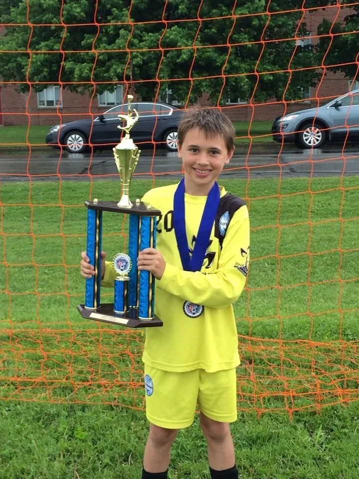 A young Blake Gillespie showing off a soccer trophy. Photo supplied.