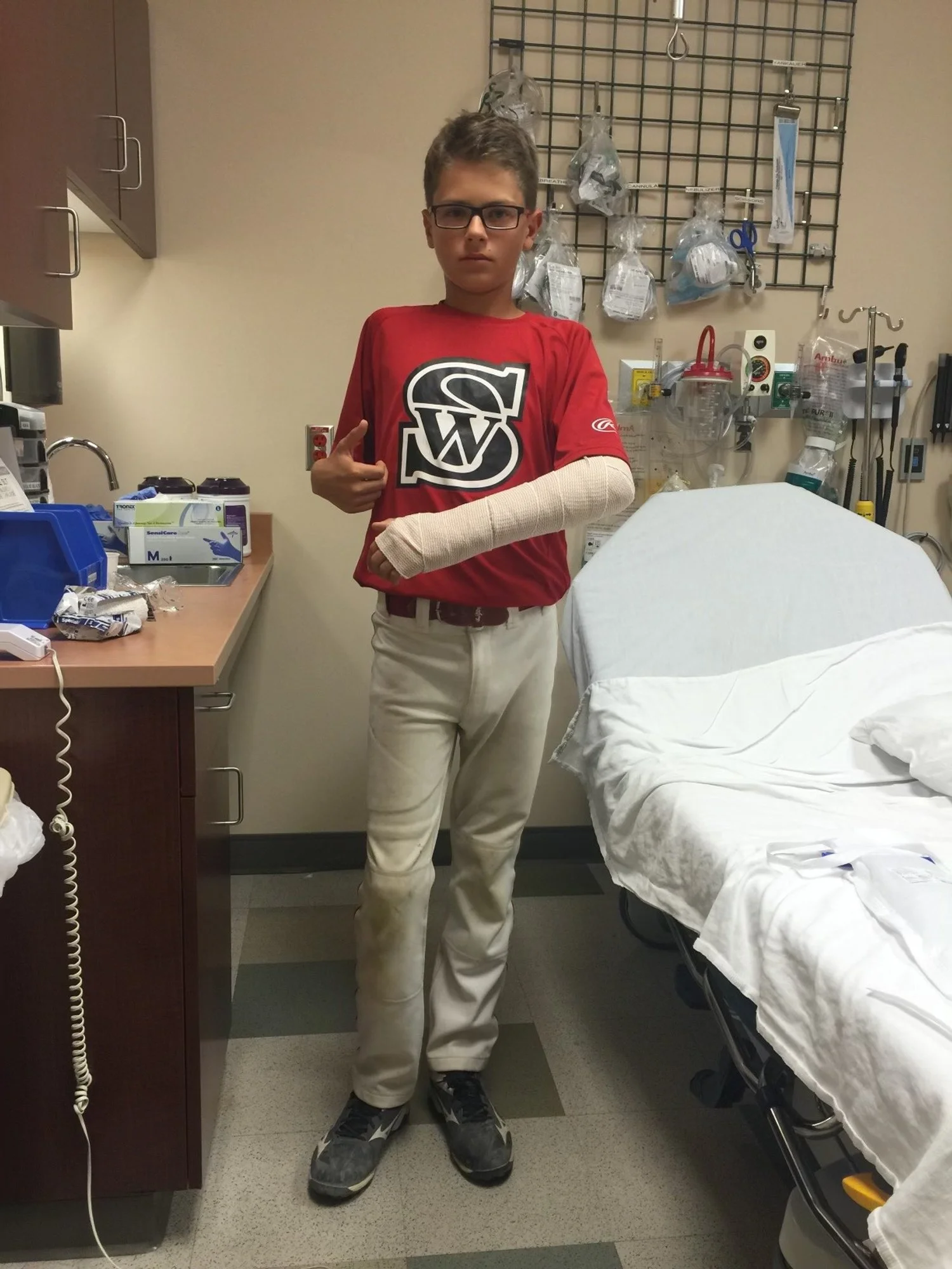 Shaye after he broke his arm in a Little League game.