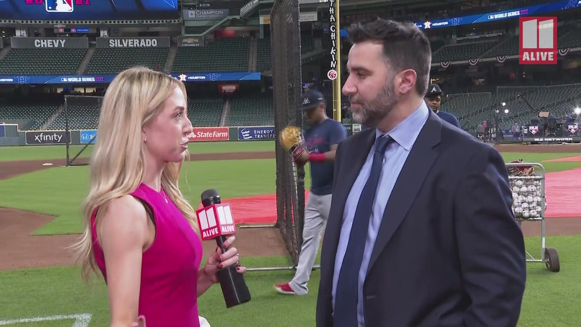 11-Alive’s Maria Martin interviews Braves general manager and president of baseball operations Alex Anthopoulos (Montreal, Que.) during the World Series. .