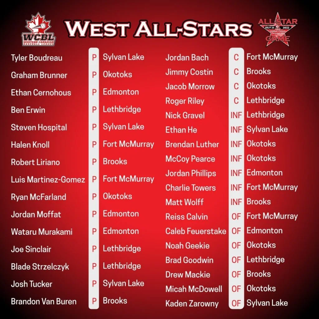 The Western Canadian Baseball League (WCBL) has unveiled its selections for the 2022 All-Star Game at Seaman Stadium in Okotoks.