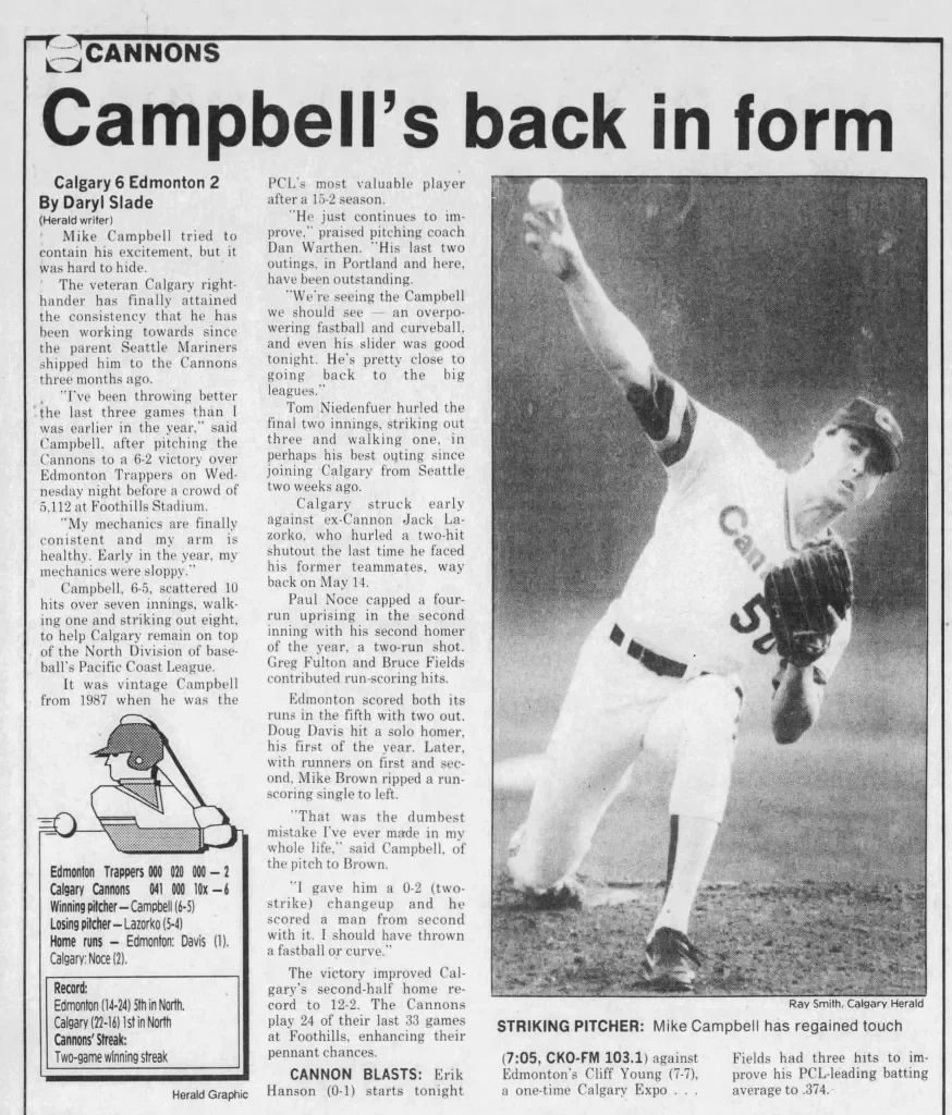 “I’d like to visit Calgary again, but not to stay. I don’t have anything to prove in triple-A,” said Campbell in a March of 1988 interview.