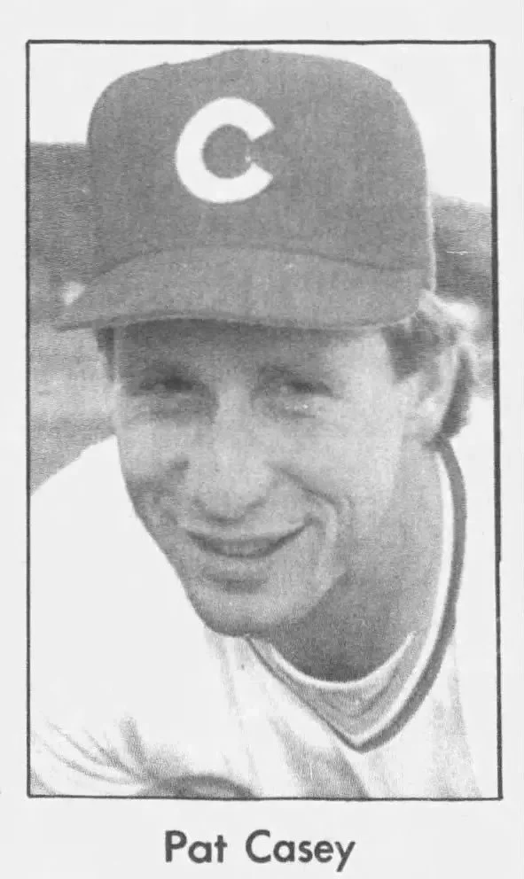 Former Calgary Cannons infielder Pat Casey was a right-handed hitter who posed as a lefty for this baseball card.