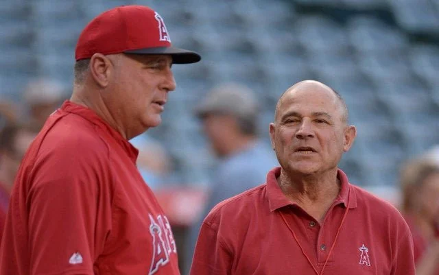 Angels manager Mike Scioscia, left with GM Bill Stoneman