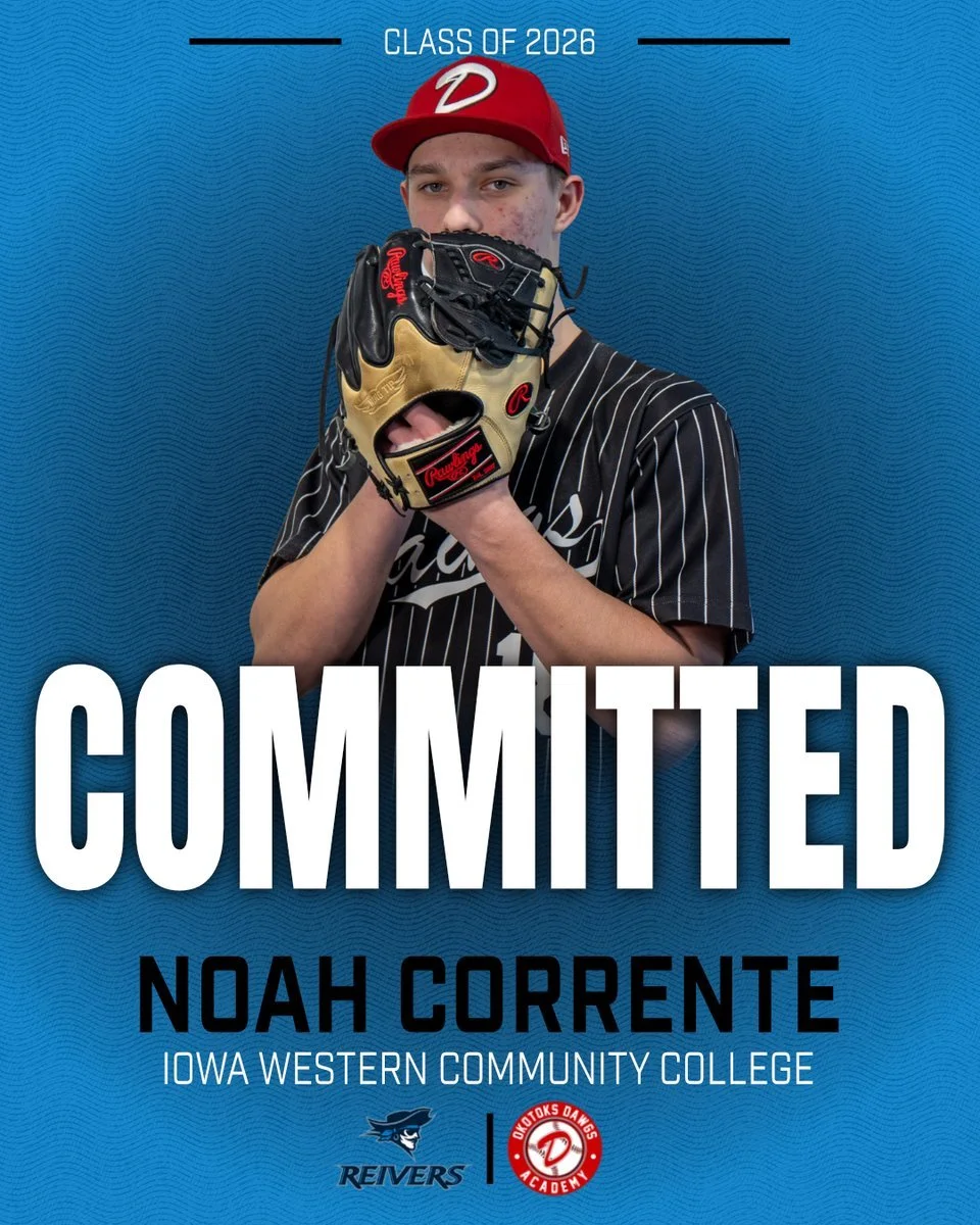 Okotoks Dawgs RHP Noah Corrente (Squamish, BC) is one of four committed to JUCO this week. He is headed Iowa Western.